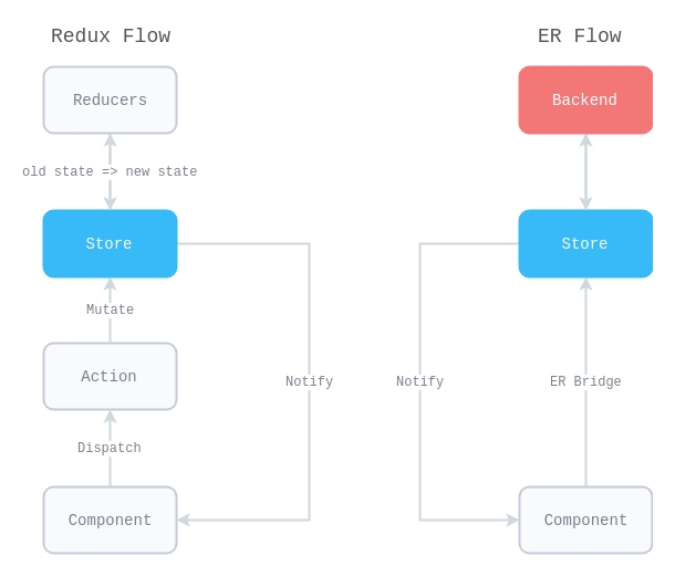 Compare these diagrams, we've simplified Redux flow and threw out unnecessary middleware: